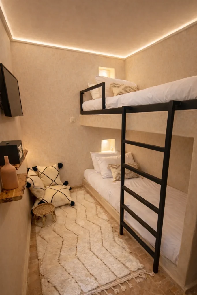 La chambre Dakhla rend hommage à l’une des destinations les plus fascinantes du Maroc. Située entre désert et océan, Dakhla est connue pour ses paysages sauvages et son atmosphère paisible.